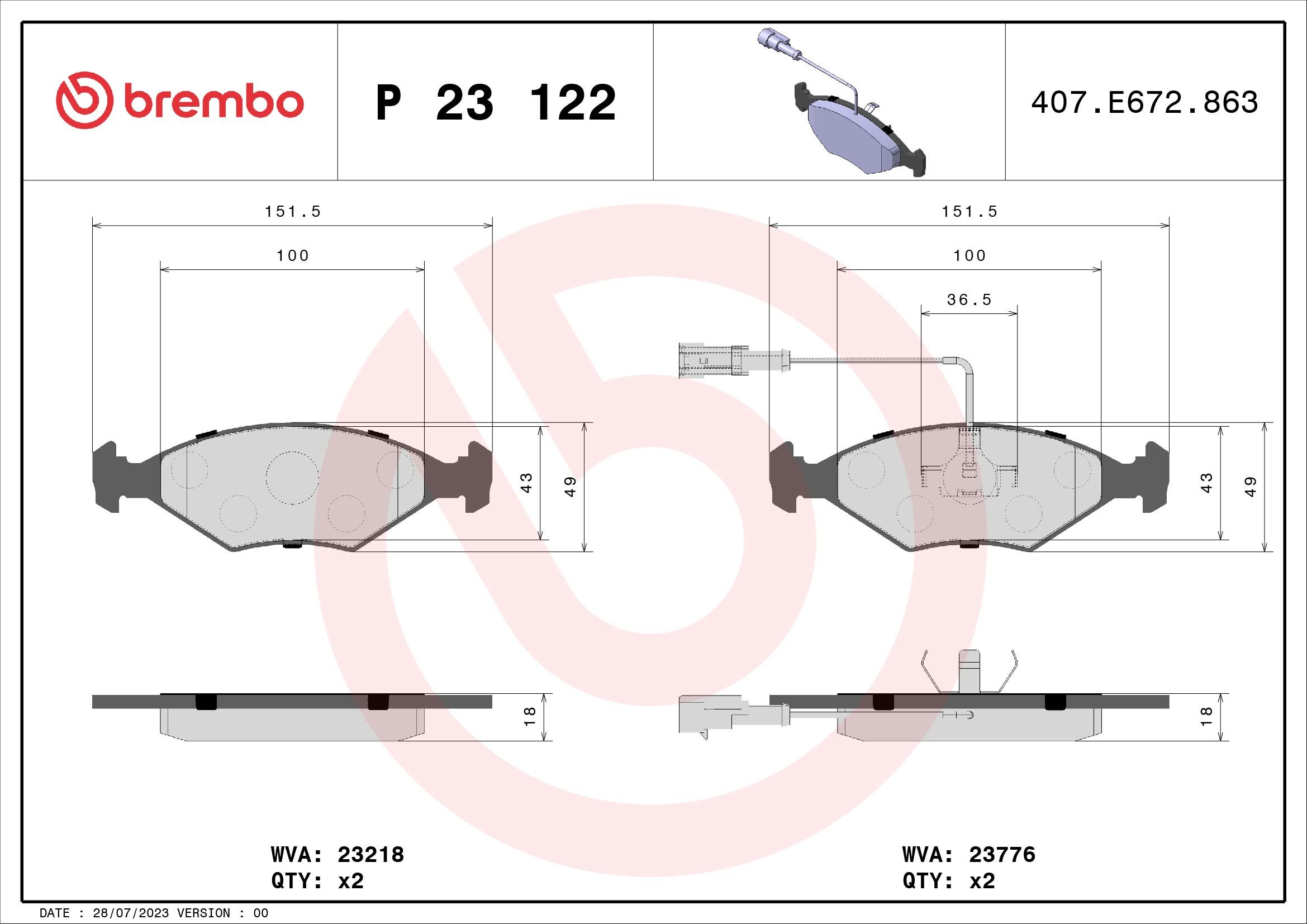 Bremsbeläge Satz BREMBO P 23 122