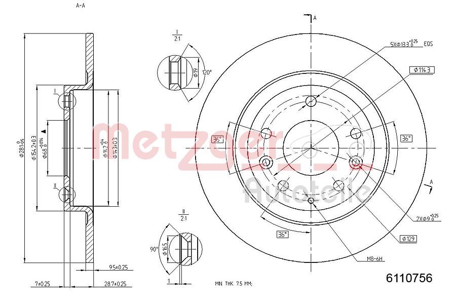 Bremsscheibe METZGER 6110756