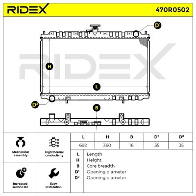 Kühler, Motorkühlung RIDEX 470R0502