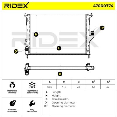Kühler, Motorkühlung RIDEX 470R0774