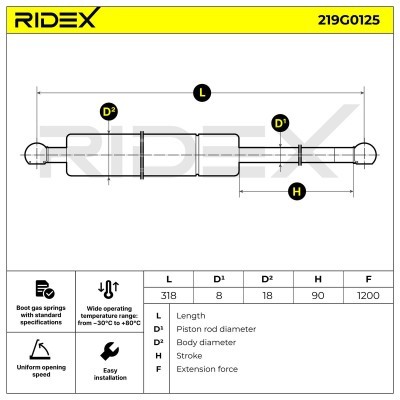 Gasfeder, Koffer-/Laderaum RIDEX 219G0125