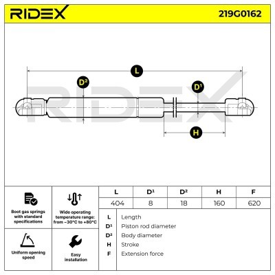 Gasfeder, Koffer-/Laderaum RIDEX 219G0162