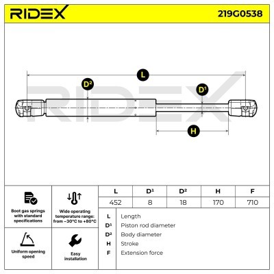 Gasfeder, Koffer-/Laderaum RIDEX 219G0538