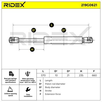 Gasfeder, Koffer-/Laderaum RIDEX 219G0621
