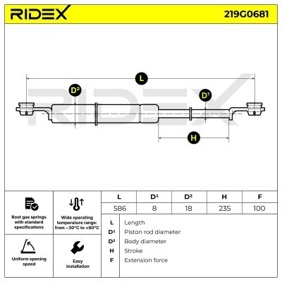 Gasfeder, Koffer-/Laderaum RIDEX 219G0681