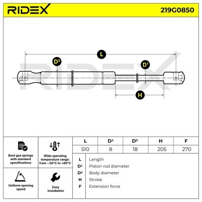 Gasfeder, Koffer-/Laderaum RIDEX 219G0850