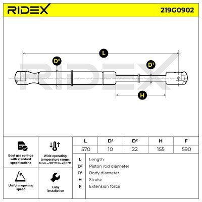 Gasfeder, Koffer-/Laderaum RIDEX 219G0902