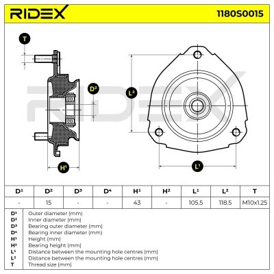 Stoßdämpferkissen Vorderachse RIDEX 1180S0015