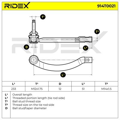 Spurstangenkopf RIDEX 914T0021