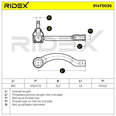 Spurstangenkopf RIDEX 914T0036