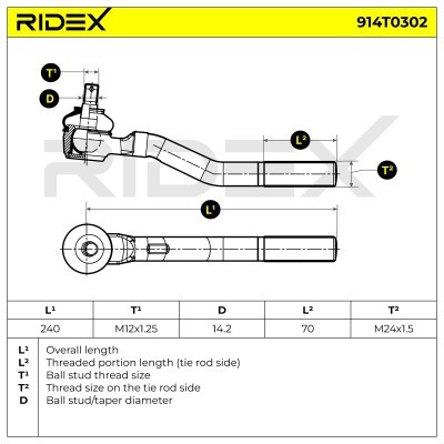 Spurstangenkopf RIDEX 914T0302
