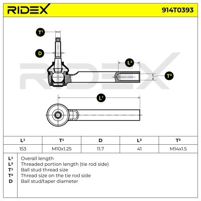 Spurstangenkopf RIDEX 914T0393